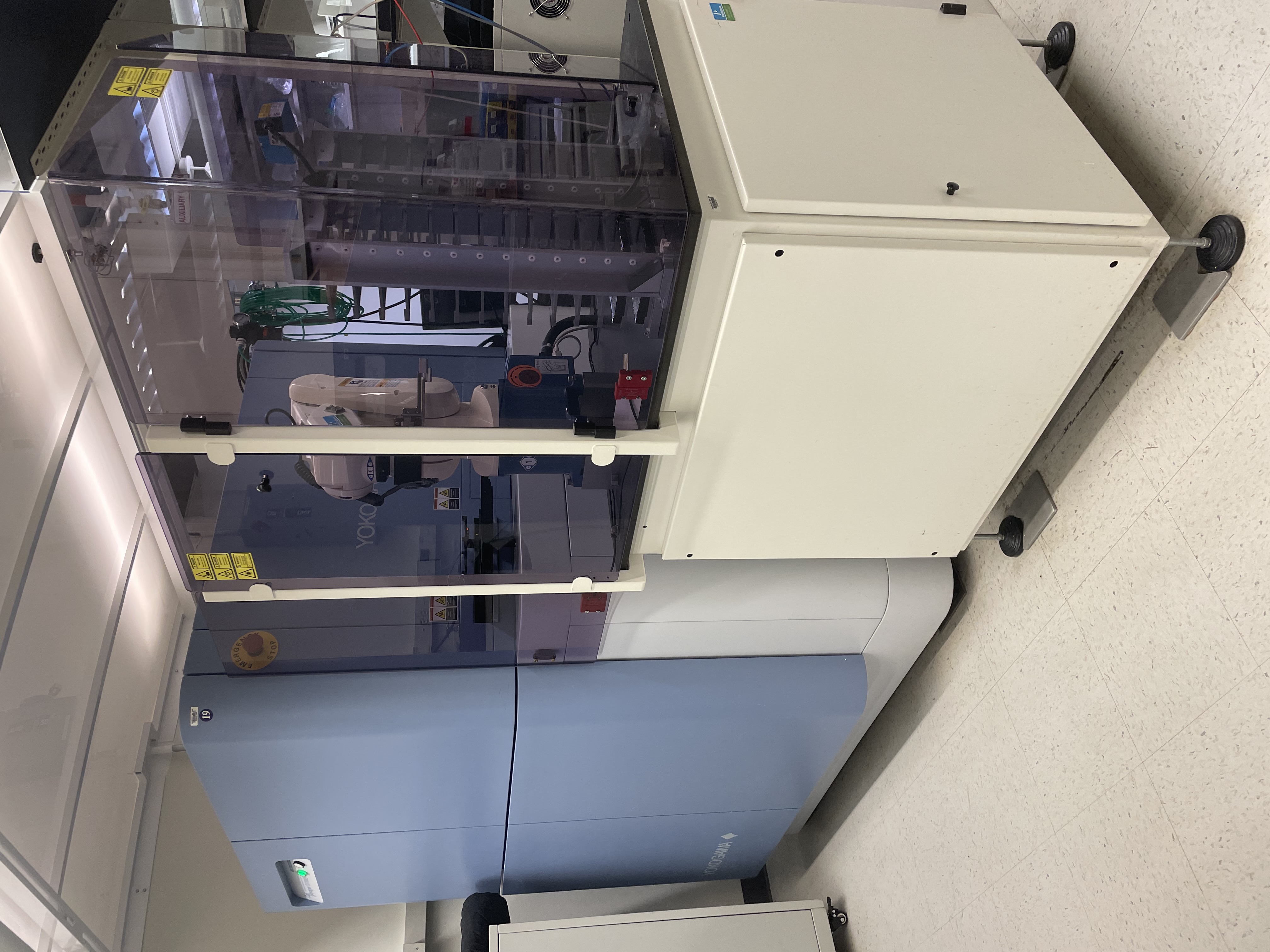 Yokogawa CV8000: The Yokogawa CV8000 is HiTIF second high-throughput imaging system. The CV8000 feature set is similar to the CV7000. When compared to the latter, the CV8000 has a newer generation of sCMOS cameras (QE 82%, 2048 X 2048 pixels), and a 40X water objective with higher NA (1.15). The CV8000 is not currently integrated with a robotic arm.